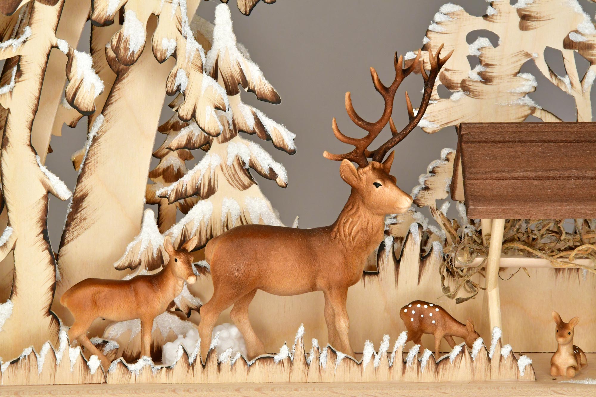 3D-Schwibbogen gr., Rehe im Wald, farbig grau, Raureif