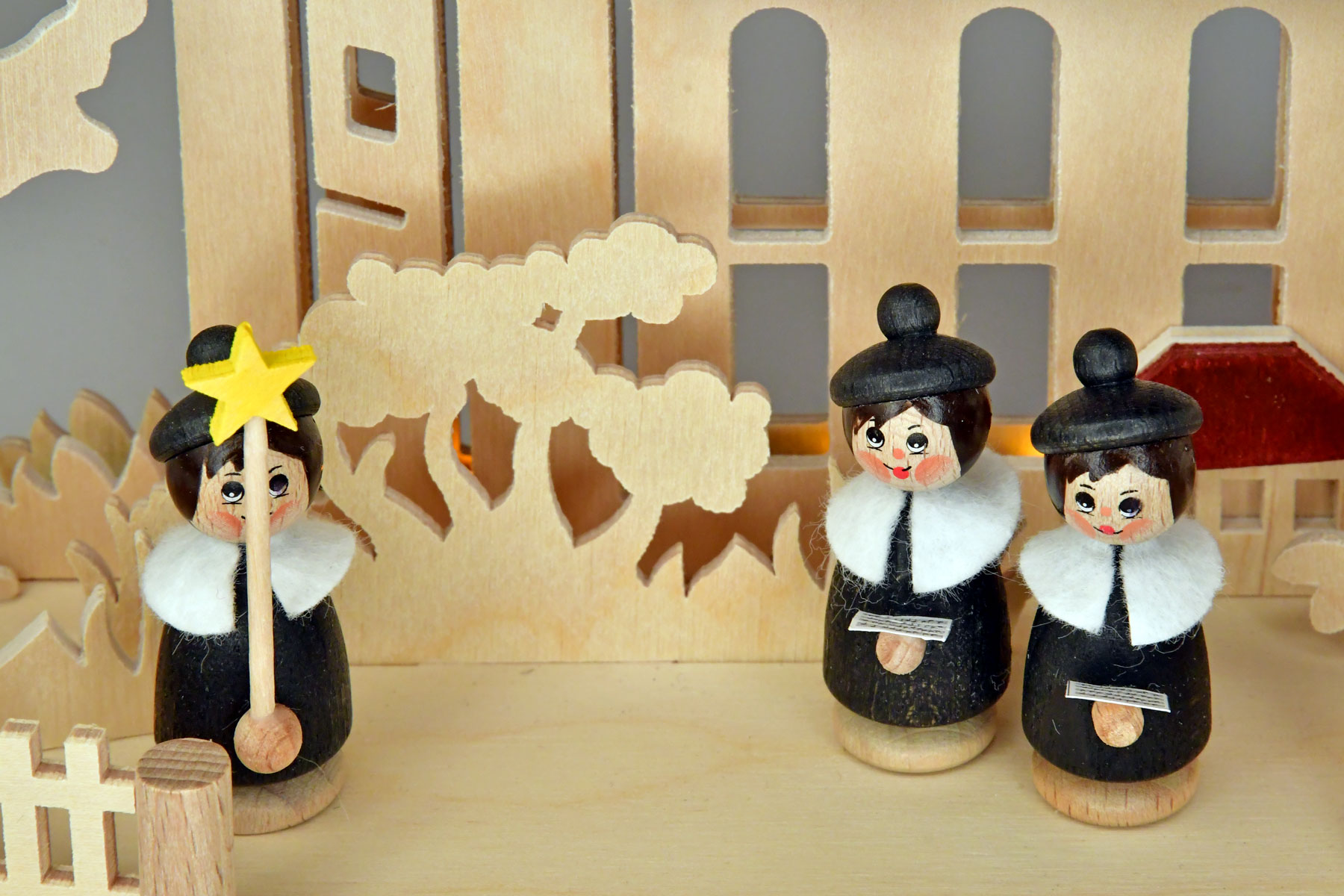 Auf dem Vorplatz singt eine Kurrende. Aus dem Inneren der Kirche dringt ein gedämpftes Licht.