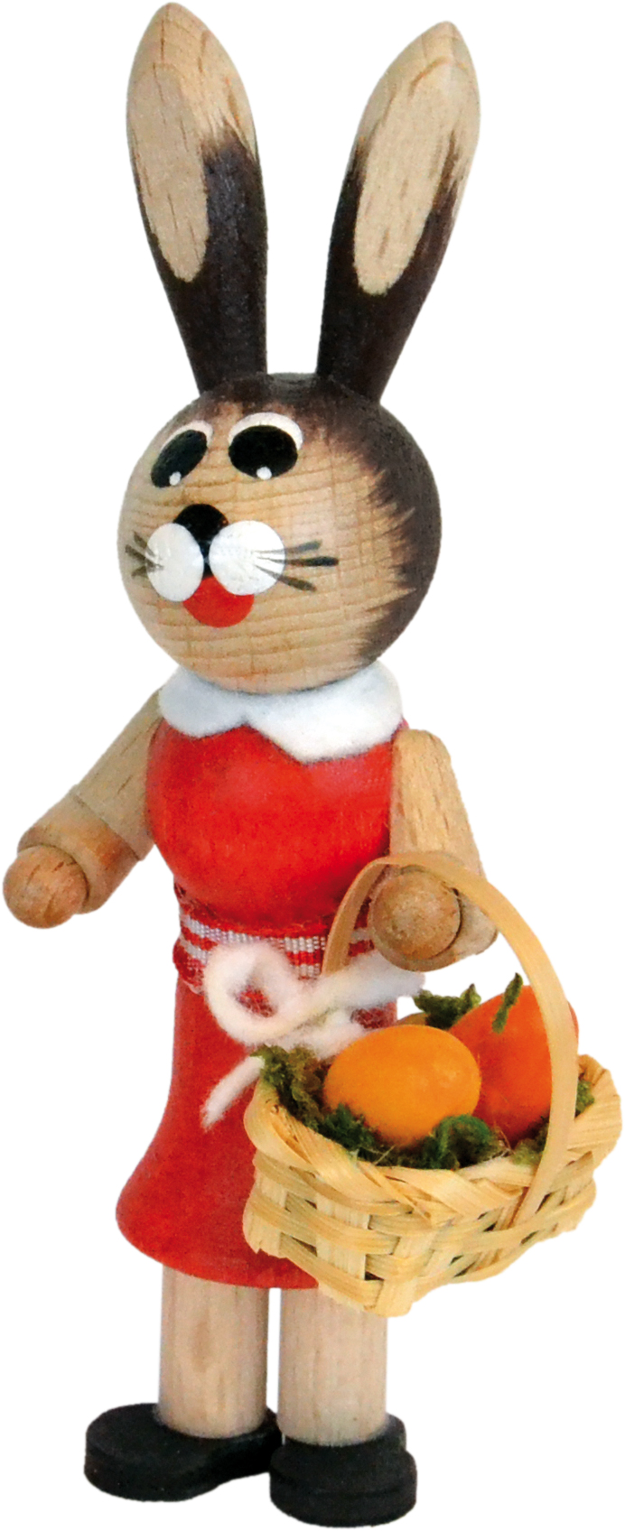 Bunny girl in a red dress with an Easter basket. The cute bunny couple can be ordered as individual bunnies. Decorative suggestion.
