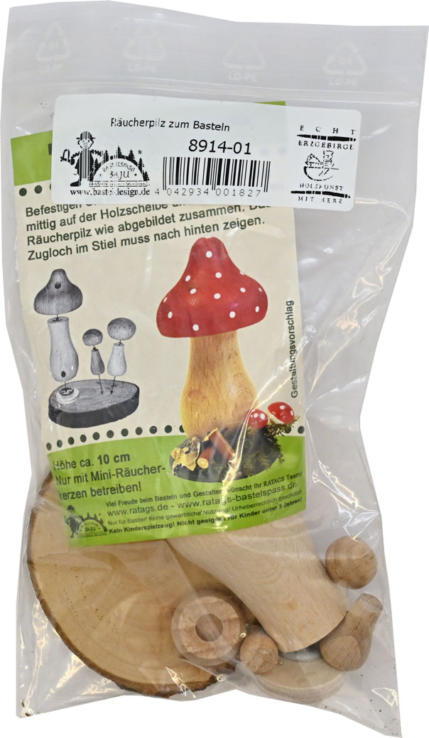 Contents: Incense burner upper and lower parts, head, nose, 2 arms, 2 hands, hair, felt, incense burner base, 2 nails, accessories. All wooden parts are supplied in natural finish. Genuine handicraft from RATAGS – Made in Germany – 100% original Erzgebirge. Height approx. 9 cm.