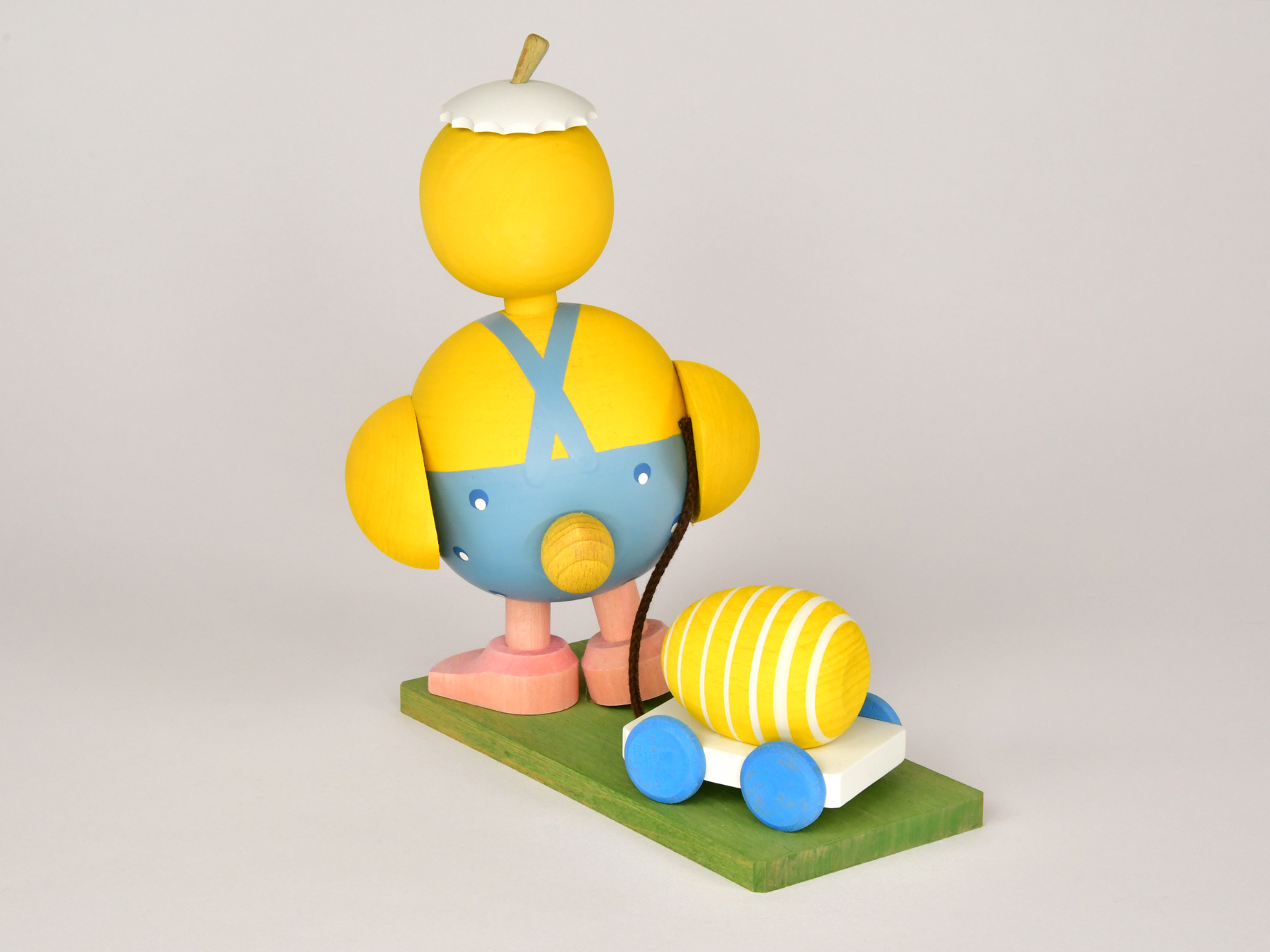 Paul Ullrich GbR is a family business whose motifs often commemorate the traditions of Easter. This is also the case with this rabbit, who stands in front of his family and proudly presents the large, artistically painted egg. It is a tribute to the tradition of Easter egg painting, which is celebrated here in the Ore Mountains. Design: Modern Colour: Blue Year of manufacture: 2012 Material: Red beech, plywood, white beech Type: Easter bunny Intended use: Decorative figure for display Weight: 0.078 kg Width: 5.5 cm Height: 11.5 cm