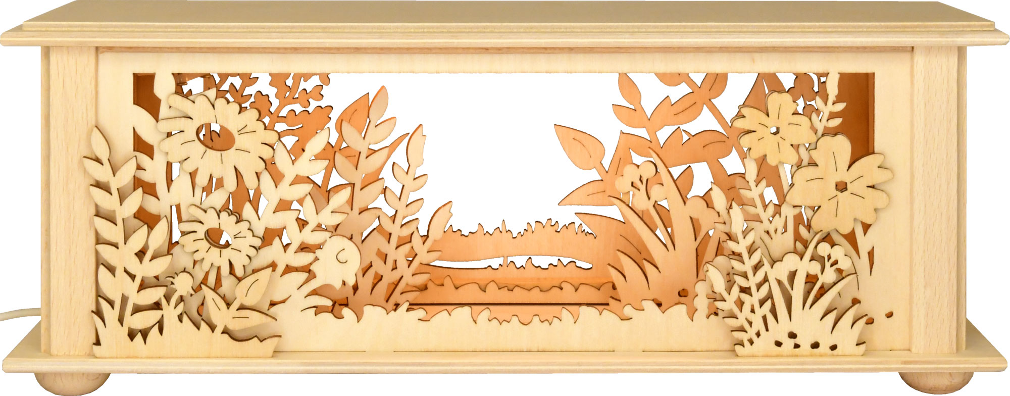 Size: 70 x 15 x 12 cm (WxHxD) Lighting: LED, 20 pieces Genuine handicraft from RATAGS – Made in Germany – 100% original Erzgebirge The medium-sized room light has a motif of a densely overgrown forest. The natural base is made extra special by its detailed design. This Schwibbogen extension is the perfect console for many Schwibbögen, not just at Christmas. Our fretwork is genuine handcrafted and exudes a special cosiness thanks to the twenty-piece indirect LED lighting.