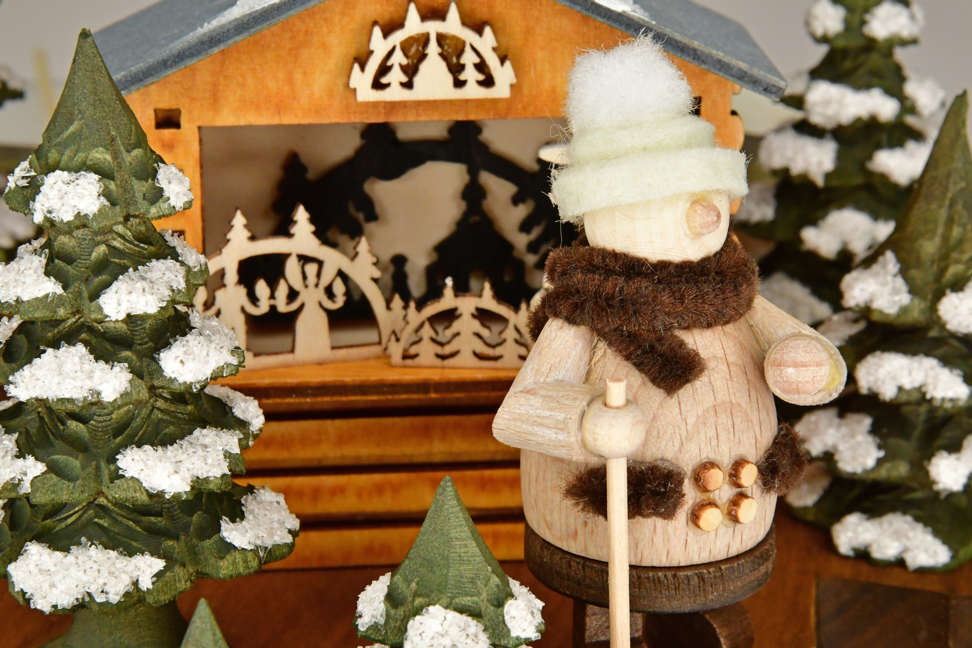 The Walkis have been eagerly awaiting the Christmas market. Today is the day and the Christmas huts are open. Amongst green, snow-covered, carved fir trees, you can purchase wooden art from the Ore Mountains and listen to the organ player. Of course, no Christmas market would be complete without a large Christmas tree decorated with red baubles. This one is particularly beautiful because it rotates beautifully in the light of the lit tea lights. The solid wood leaf pyramid glows in a warm brown. The Christmas atmosphere is made even more contemplative by the light of the candles. The pyramid is powered by two lit tea lights, which are placed in the solid wood tea light holders provided.