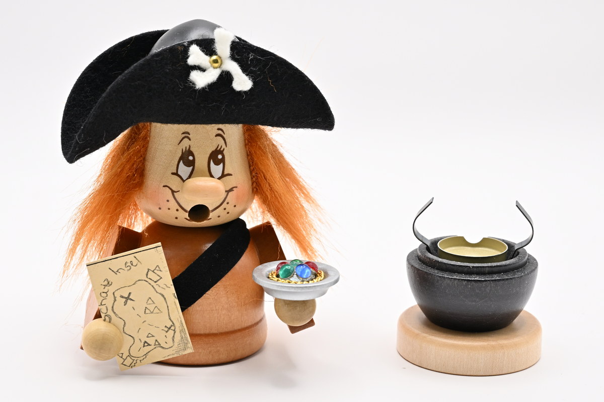 Size: approx. 16 cm (H) The Erzgebirge painter adds the finishing touches to the turned figures. They are lovingly decorated with his brush and colour palette. The hat and apron were handmade from brown felt. The cloth is made of green fabric. The body was stained ochre and grey. Genuine handicraft from RATAGS – Made in Germany – 100% original Erzgebirge Never leave lit incense cones unattended.