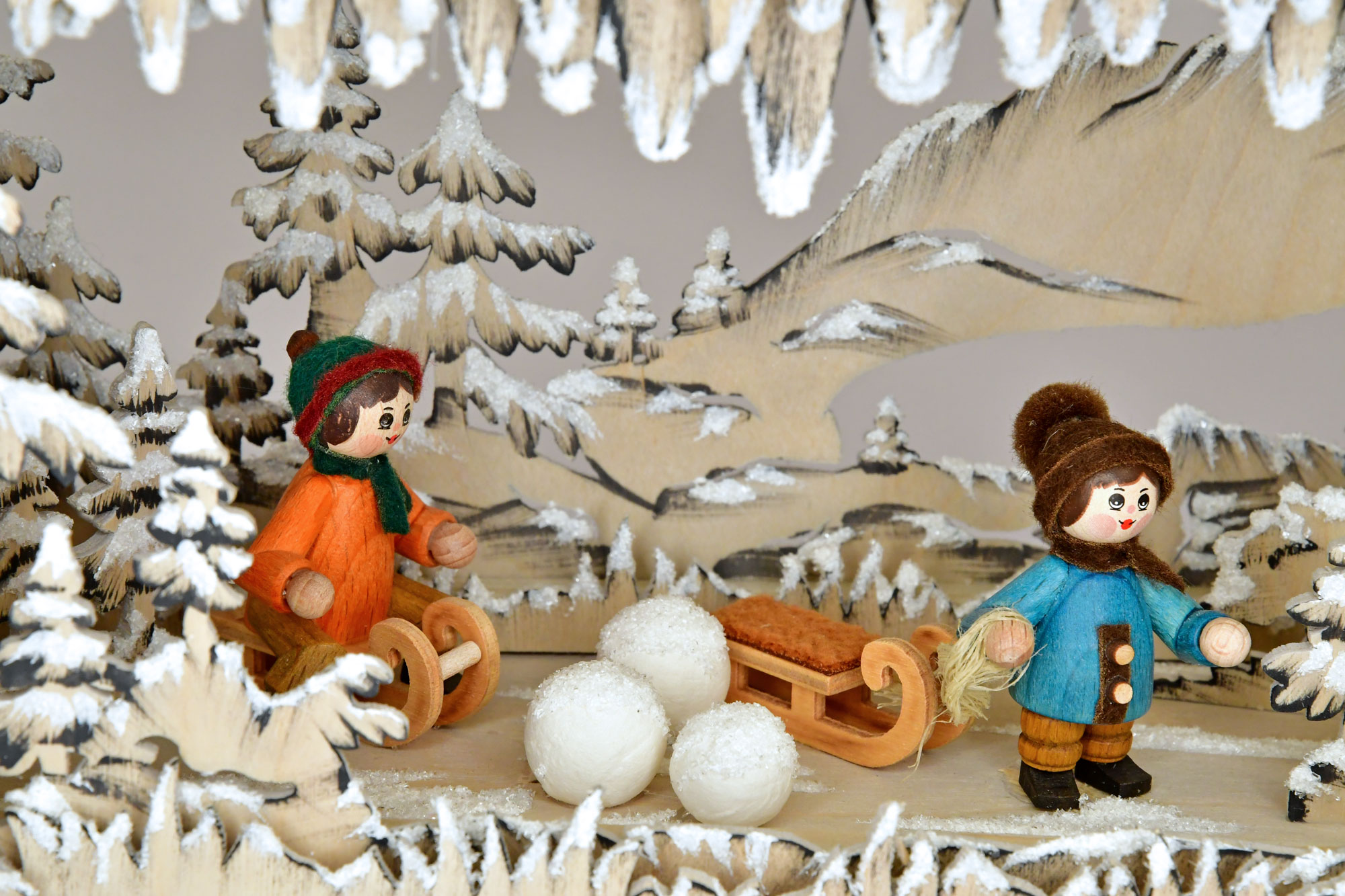 Room light, large, 3 winter children, hand-painted grey, hoarfrost