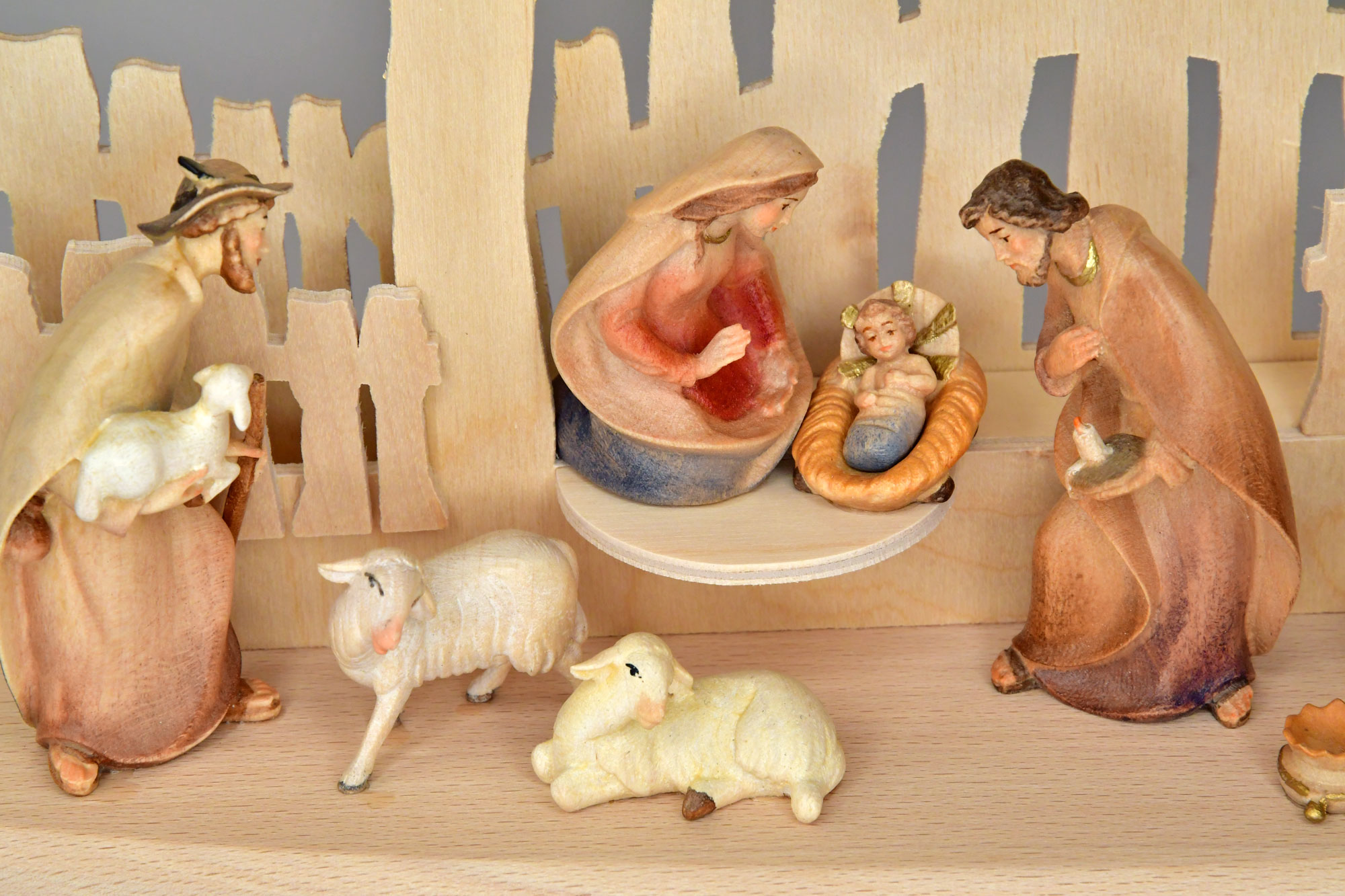 Ein Klassiker: Christi Geburt, dargestellt im Schwibbogen. Aber auf das WIE kommt es an! Echte Tiroler Figuren aus Handarbeit und farbig coloriert! Im Zentrum des naturbelassenen Schwibbogens ist die Geburtsszene zu erleben. Die Hirten waren die ersten Gäste, später folgen die Könige aus dem Morgenland, um dem Christkind Geschenke darzubringen. Maria und Joseph können ihr Glück kaum fassen. Und all das geschieht in einem Stall in Bethlehem! Eine neue Zeit bricht an.