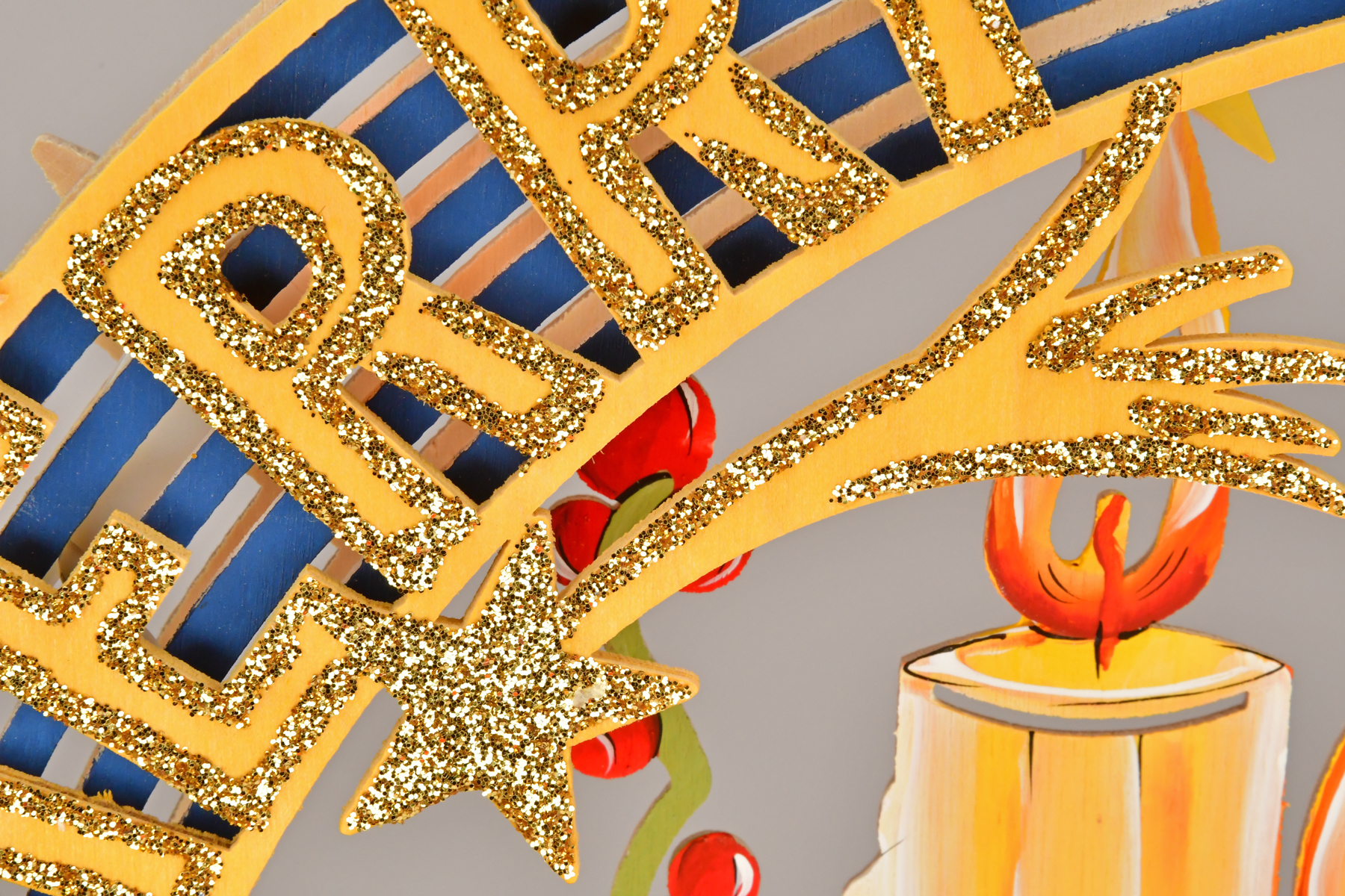 Small candle arch, Merry Christmas, hand-painted winter design, gold glitter