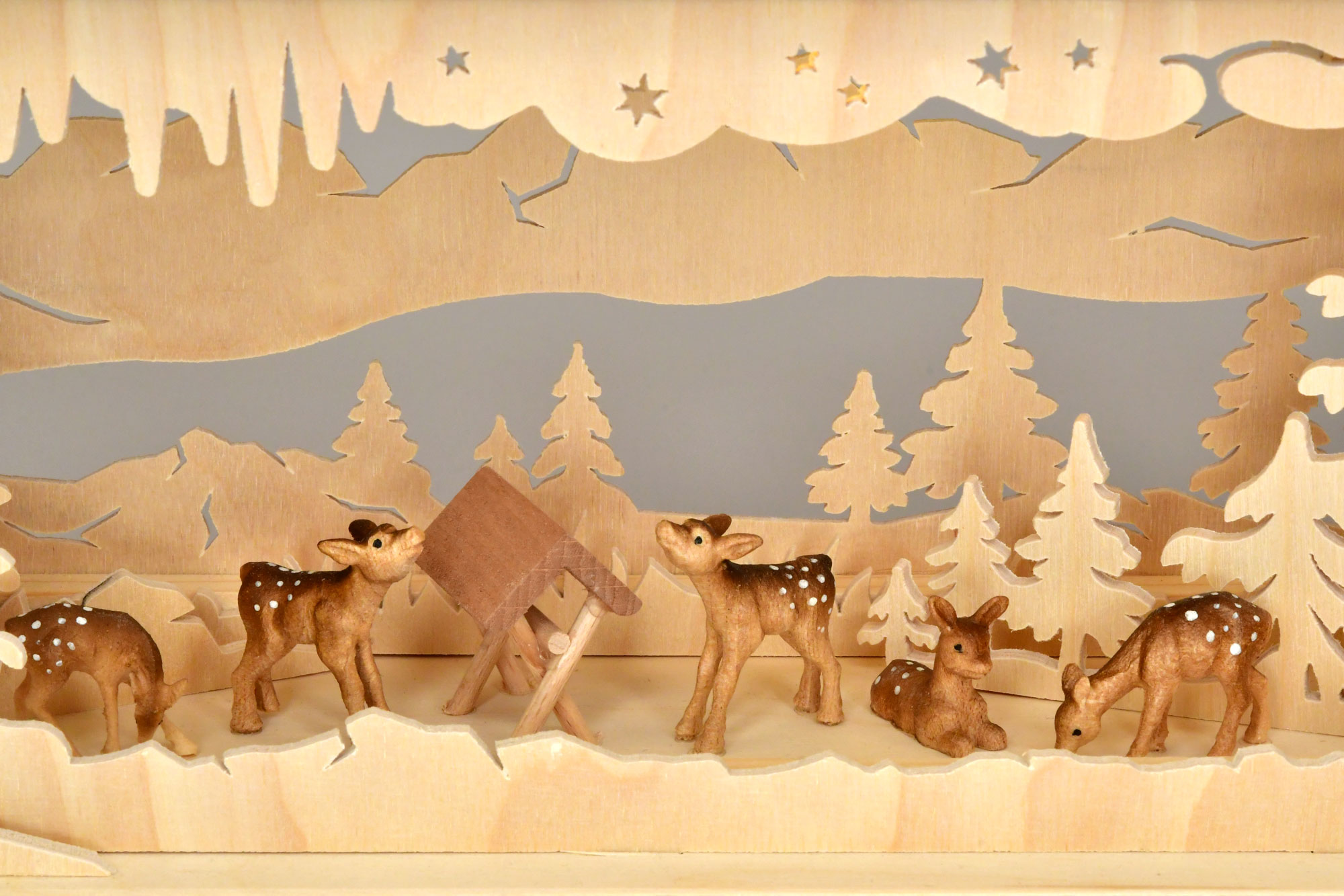 Small room light, forest, feeding trough 5 carved deer