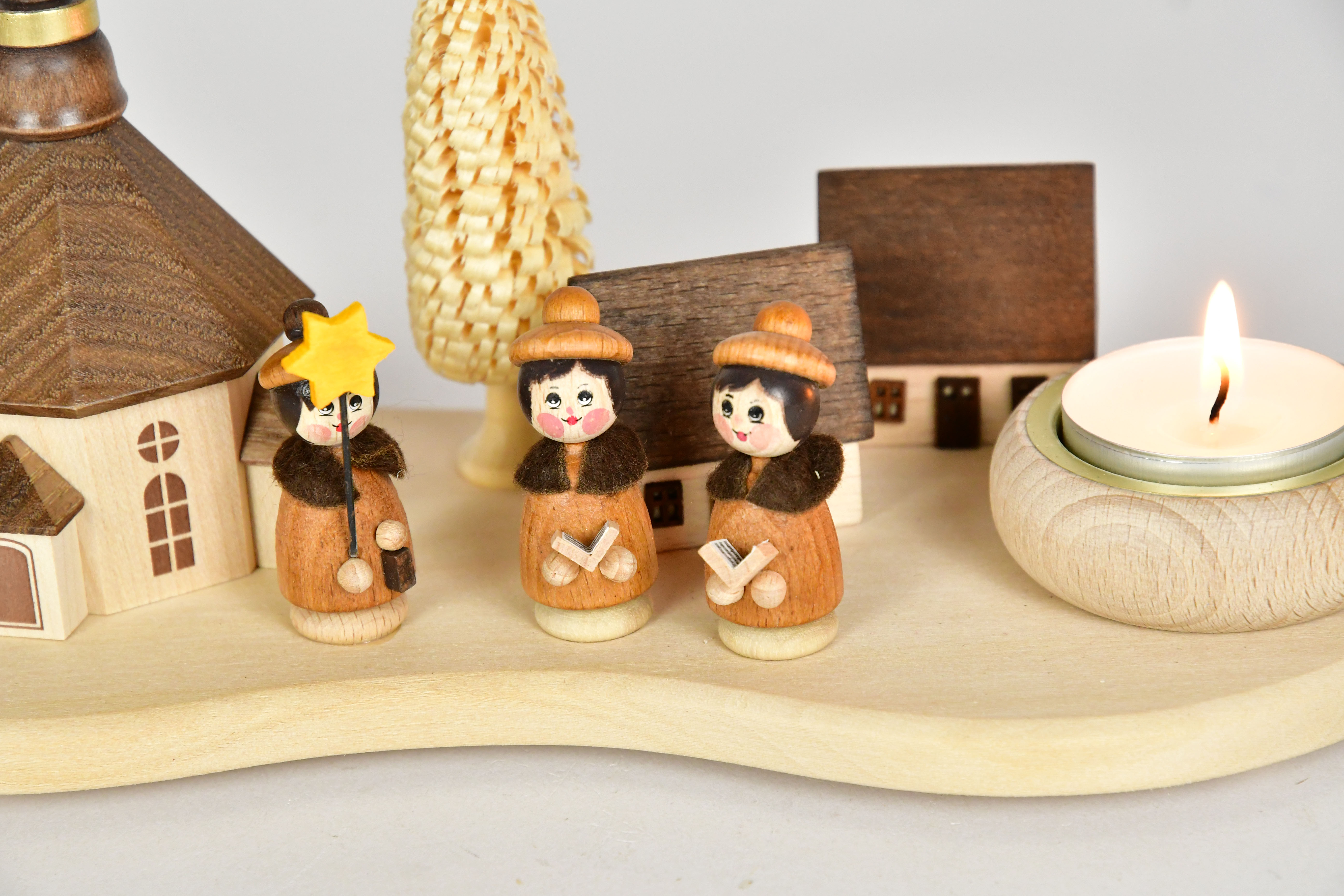 Christmas season, the carol singers wander from house to house, delighting people's hearts with their songs.