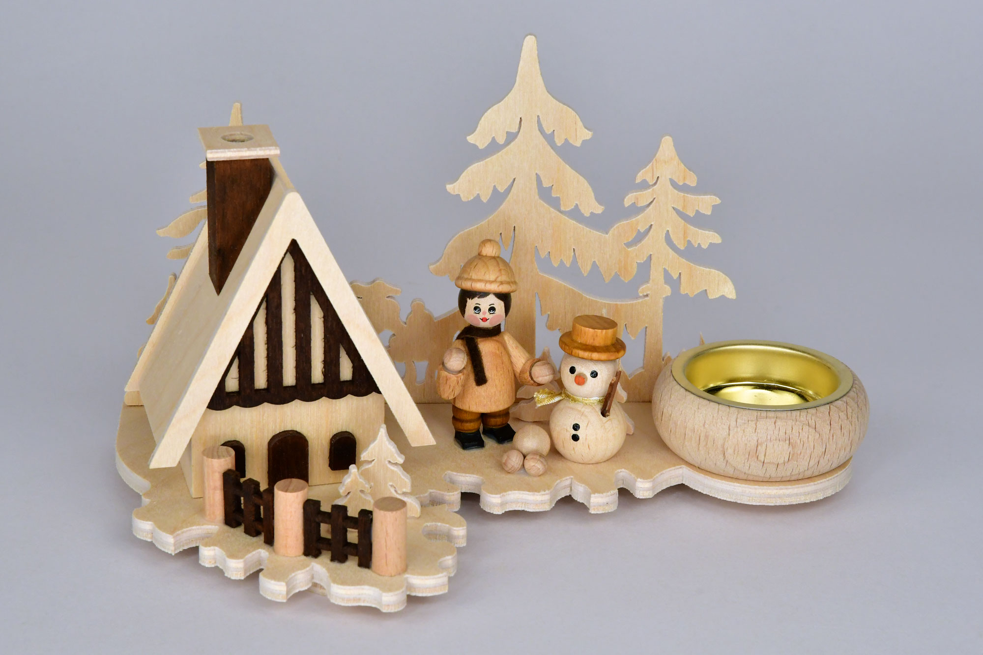 Teelichthalter mit Räucherhaus, Winterkind, Schneemann