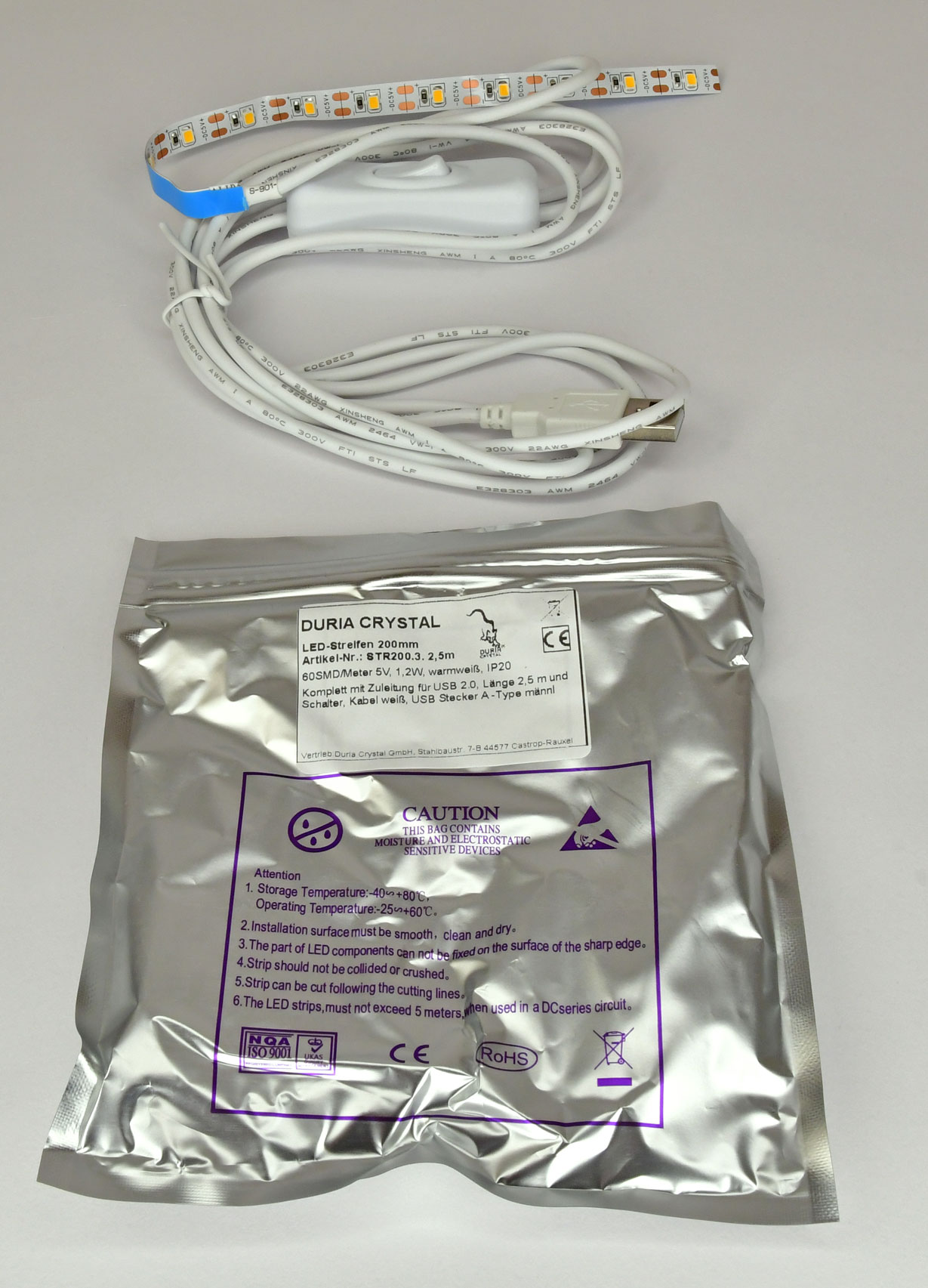 USB LED strip, length 20 cm, half USB, cable 2.50 metres, IP20, USB plug mnl.