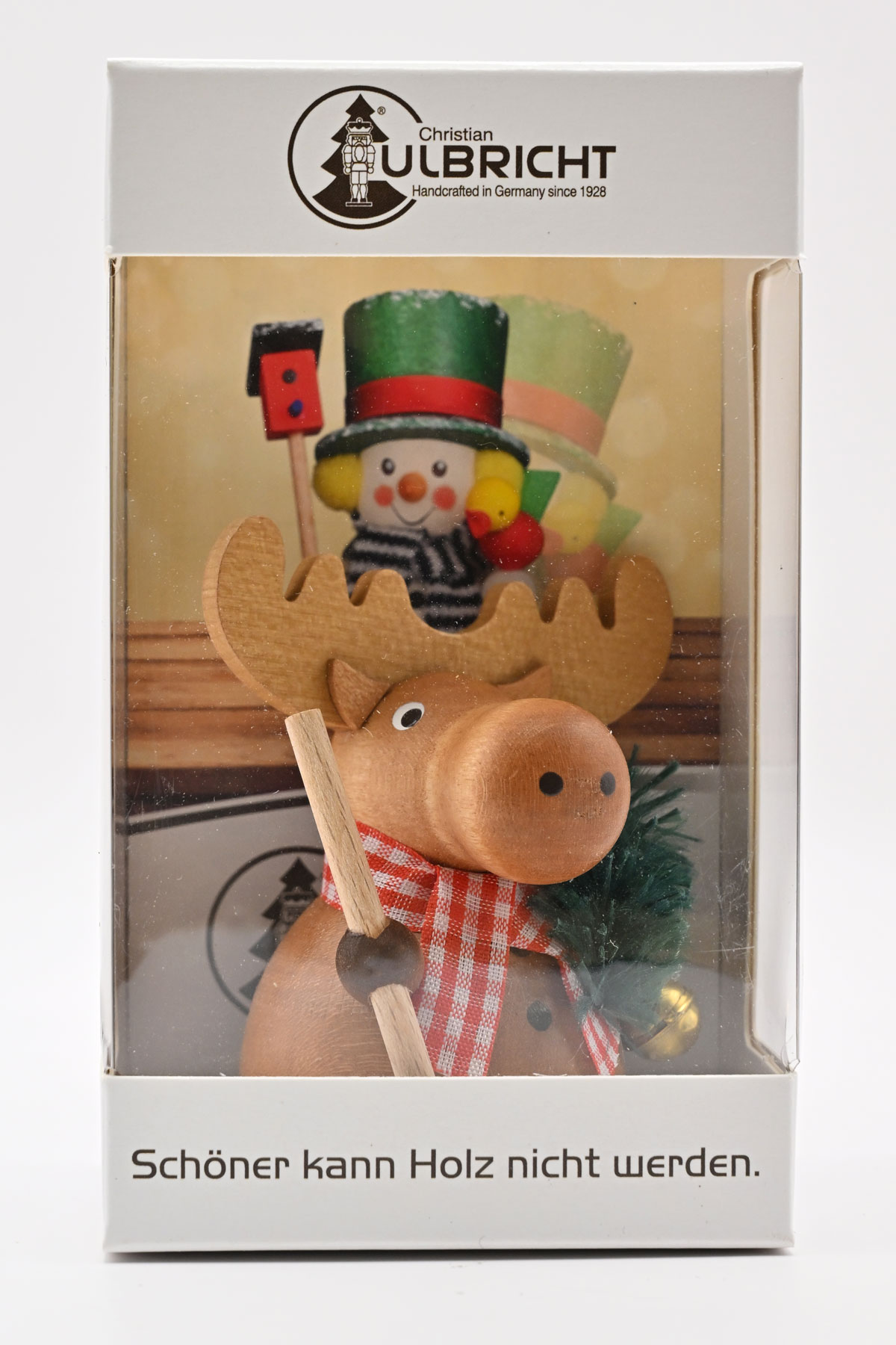 Height: approx. 6 cm Turned boy with red scarf and hat. The body has been stained brown. The bobble hat and scarf are made of brown and red felt. Genuine handcrafted – Made in Germany – 100% original Erzgebirge