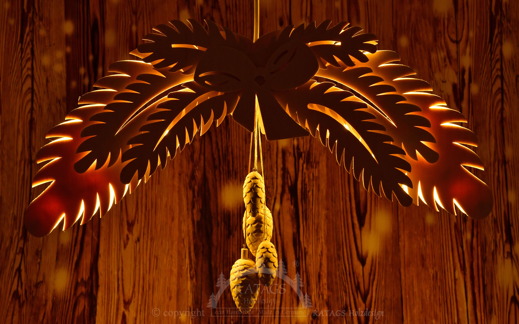 Size: Ø approx. 32 cm Lighting: LED lamp (E14, 3W, 2700K, 320 lm, 220V), 1 piece Genuine handicraft from RATAGS – Made in Germany – 100% original Erzgebirge