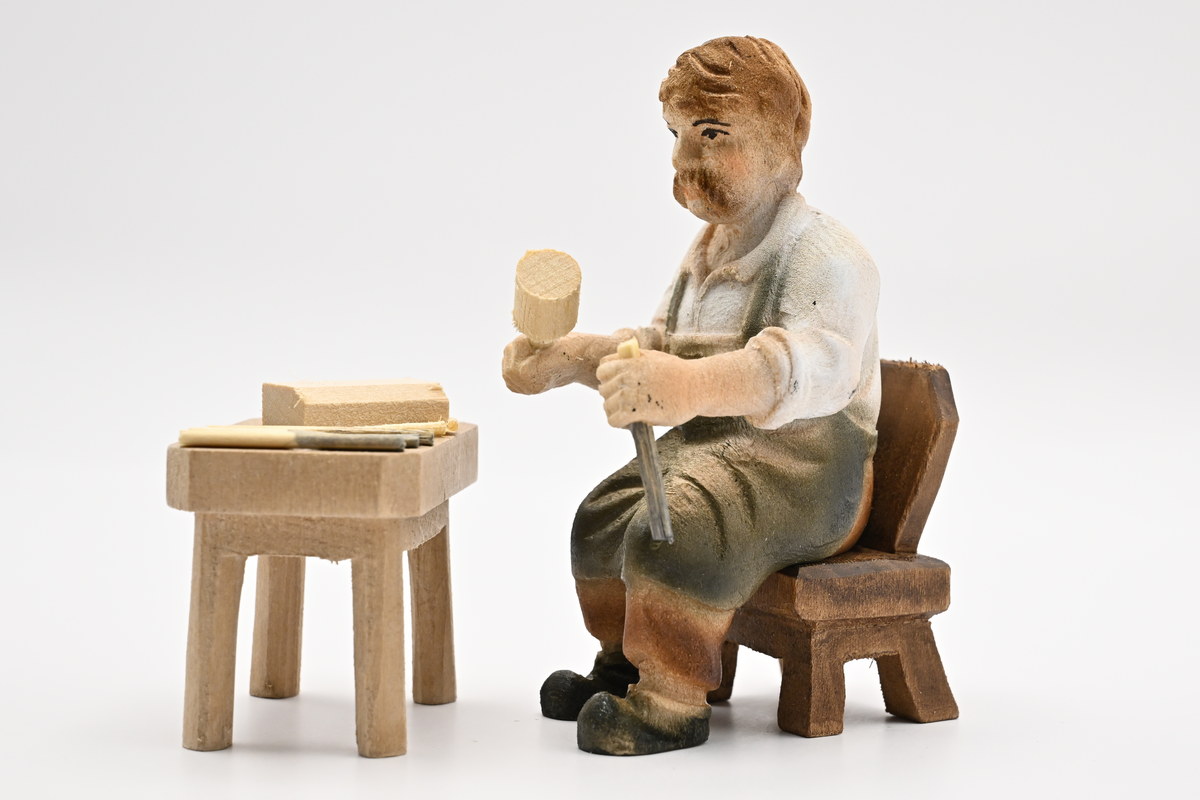 Woodcarver, seated, coloured 50 x 85 mm