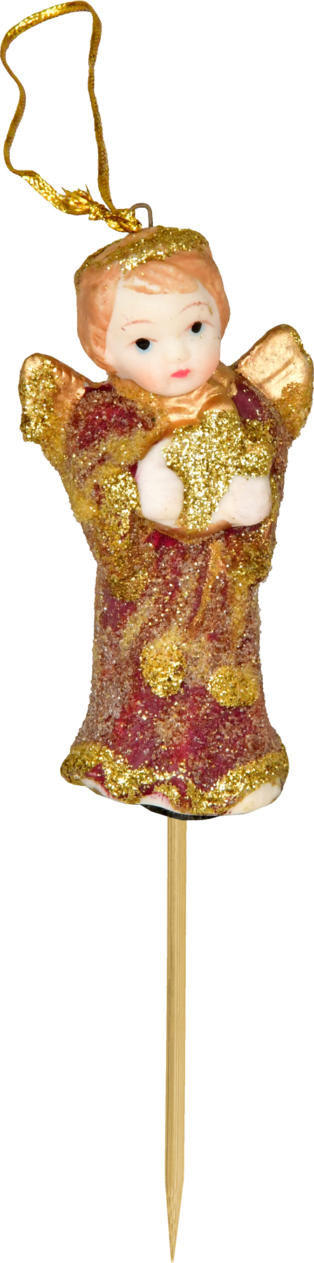 Ange en céramique, mini, avec lyre, à suspendre ou à planter, rouge vin/or, paillettes