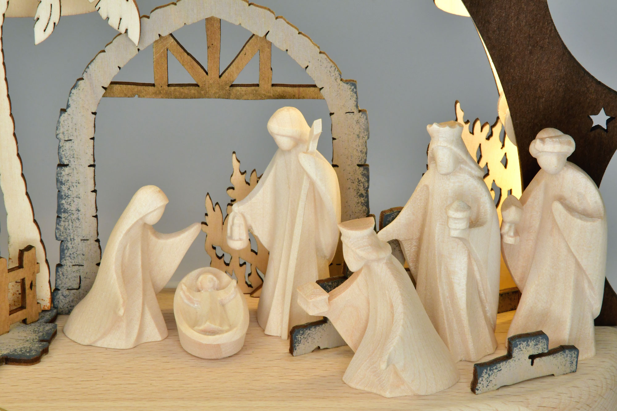 Arche lumineuse, petite, naissance du Christ, pyramide, figurines tyroliennes, bande LED