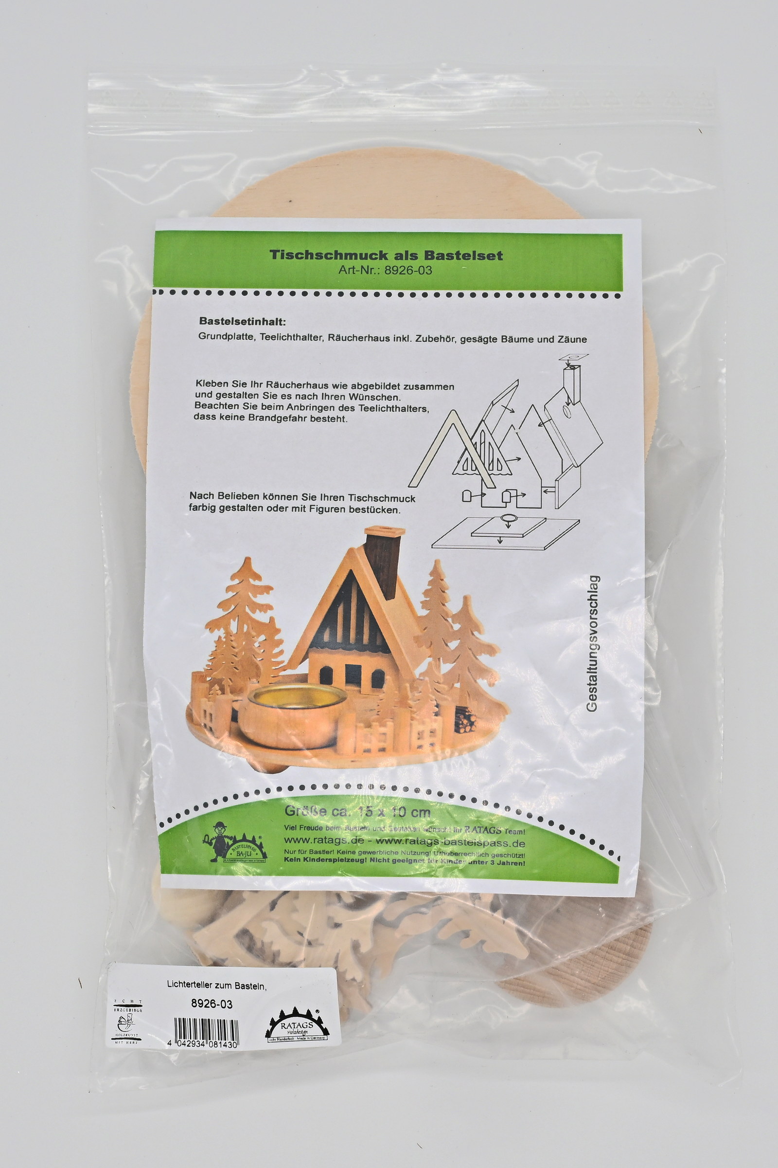 仕様:1 自己組立用製造キット サイズ:約 16 x 5 cm (幅 x 高さ) 内容: ベースプレート、木、フィギュア、金属製タッセルと水滴受け付き木製タッセル フィギュアおよび取り付け部品(フローリスト装飾を除く)はセットに含まれています 灯したキャンドルやティーライトは、決して放置しないでください。 RATAGS 社による本物のハンドメイド製品 - ドイツ製 - 100% オリジナルエルツ山地