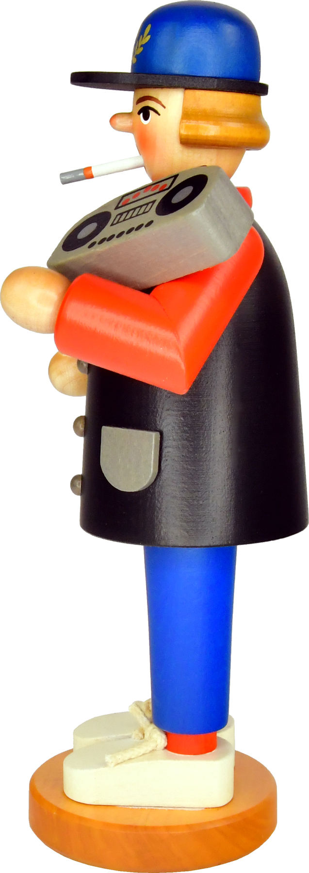 Størrelse: ca. 12 cm (H) Den fineste jobben i verden er nok å være glühwein-smaker. Med sin hvite lue med pompon og hvite filt-skjerf begir han seg til glühwein-bodene og kårer den beste glühwein ved slutten av kvelden. Røykmannens jakke er beiset brun og har vakre treknapper. La aldri tente røyklys stå uten tilsyn. Ekte håndverk fra RATAGS – Made in Germany – 100 % original Erzgebirge