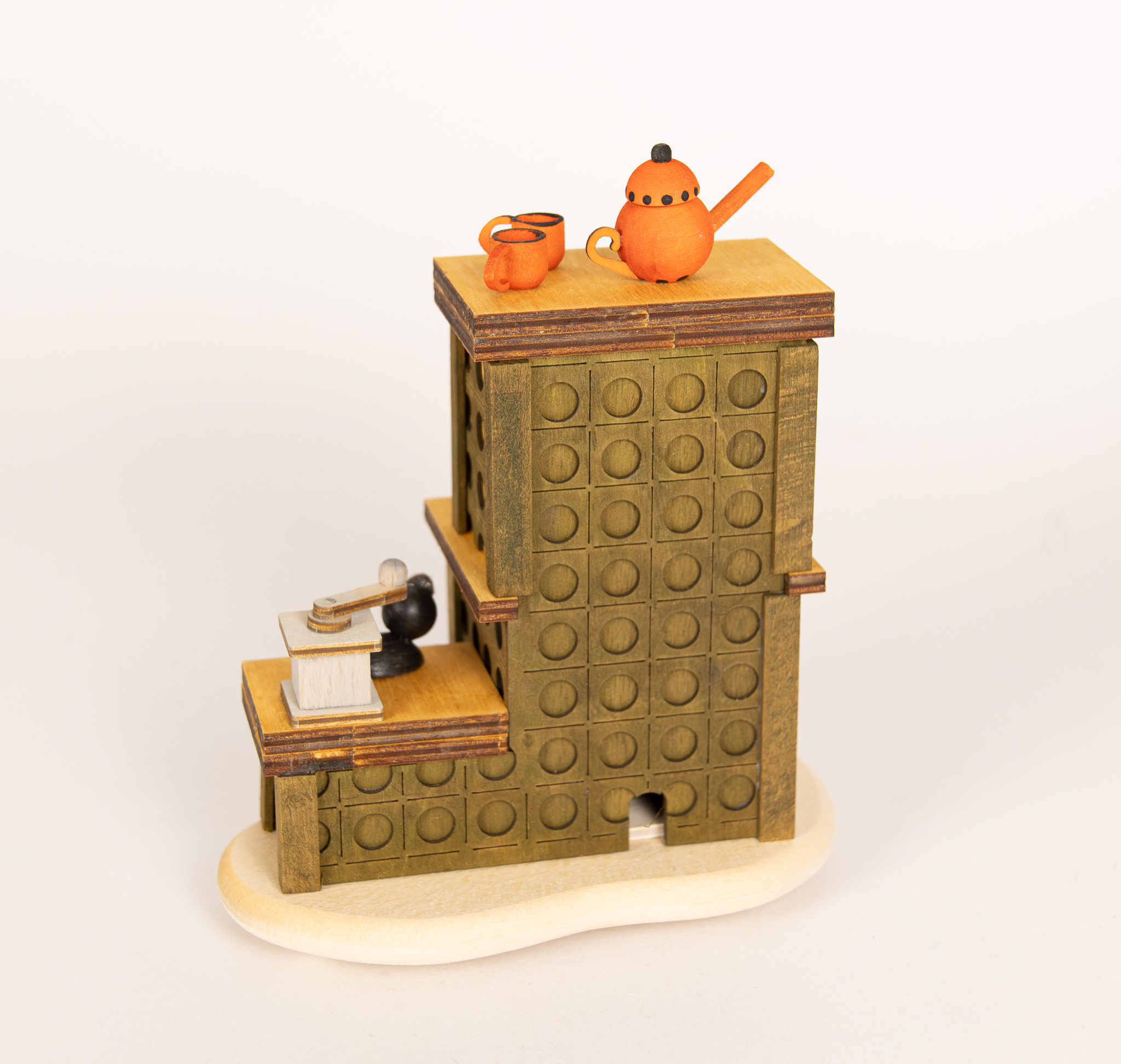 Gezellige kameroven in groen met rookfunctie. Vers brandhout ligt klaar en de kat maakt het zich gemakkelijk. Een theeservies wordt warm gehouden en de koffiemolen staat klaar voor het koffiemoment.