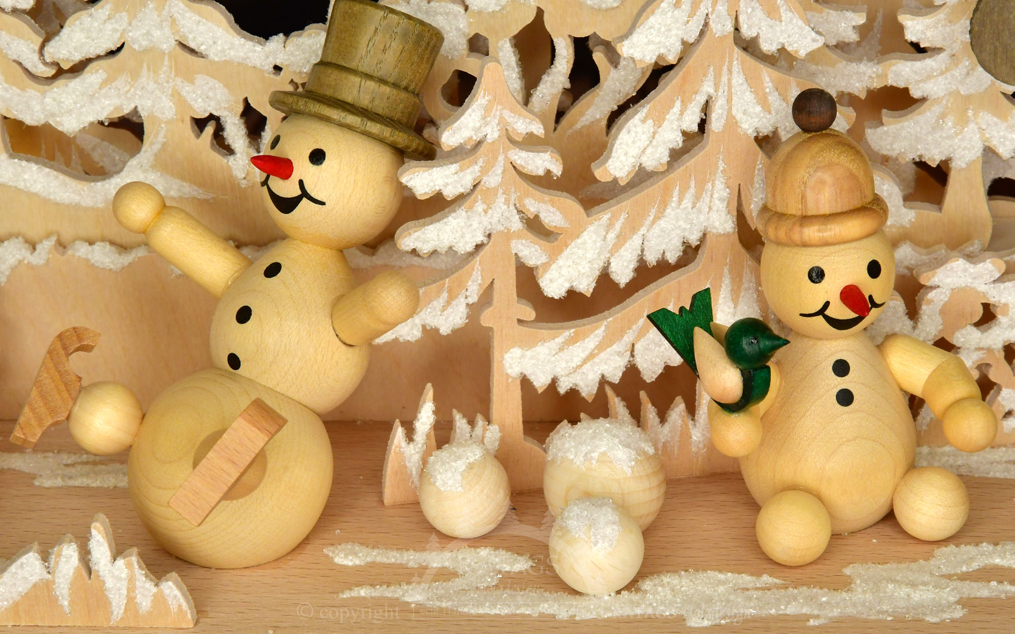 Este arco 3D mostra a casa da família "Schneemann". A casa florestal colorida combina muito bem com a paisagem montanhosa coberta de neve. Seis bonecos de neve divertidos com trenós, patins, um pássaro no braço ou descansando no banco aproveitam o inverno. A iluminação indireta e sem brilho cria um ambiente aconchegante.