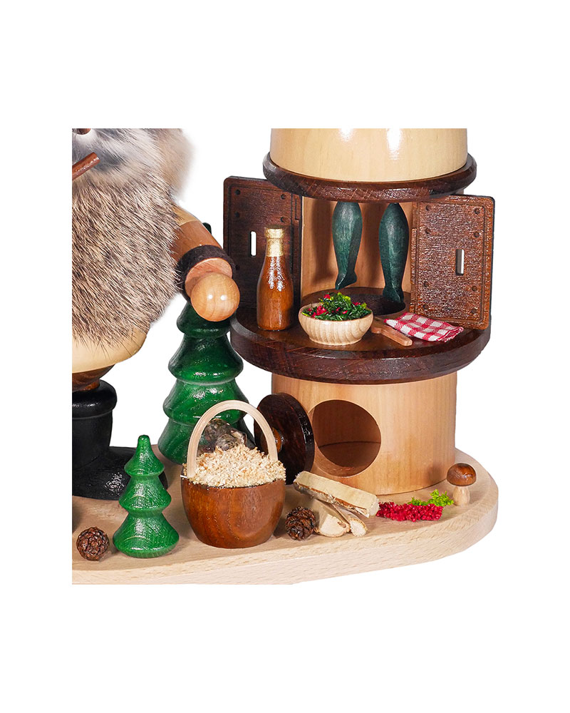 Traga um pedaço do artesanato tradicional para sua casa com a nossa novidade deste ano, o «Wichtel am Räucherofen» (duende no forno de incenso). Este boneco artisticamente trabalhado incorpora a delicadeza e o amor pelos detalhes que se espera de um verdadeiro trabalho artesanal. O boneco de incenso é feito de madeira de alta qualidade e cuidadosamente pintado e montado à mão.